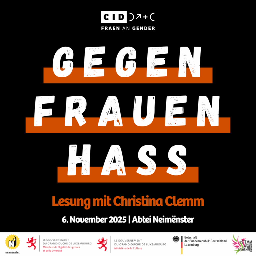 Am 6. November 2025 liest die deutsche Rechtsanwältin für Straf- und Familienrecht Christina Clemm aus ihrem Buch „Gegen Frauenhass“ (2023).